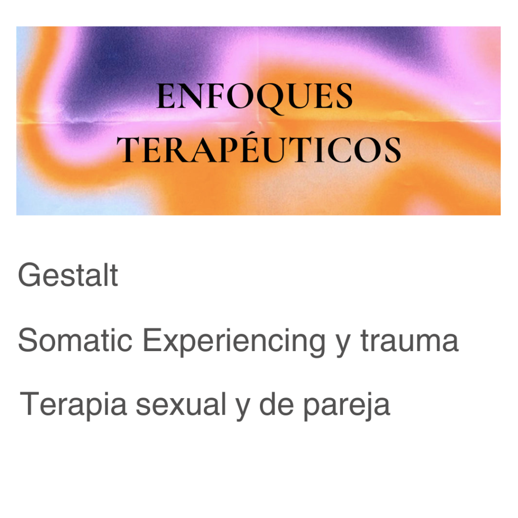 Incorporo técnicas de Somatic Experiencing, un enfoque para tratar el trauma que se centra en las sensaciones físicas y respuestas corporales para liberar la energía atrapada en el cuerpo y restablecer el equilibrio del sistema nervioso.